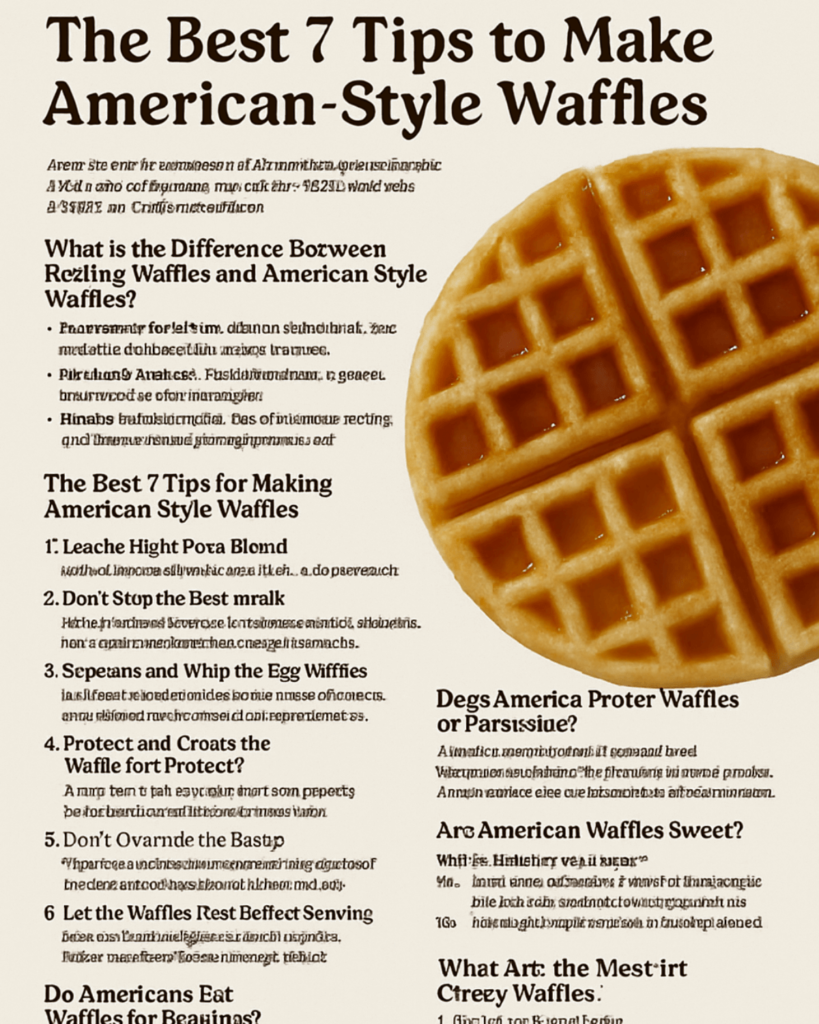 American-style waffles are a crispy, sweet, and versatile dish that has earned a permanent spot in American breakfast culture. By following the seven tips outlined here—using the right flour blend, incorporating buttermilk, whipping egg whites, preheating your iron, mixing carefully, letting them rest, and finishing them in the oven—you can create perfect waffles every time.